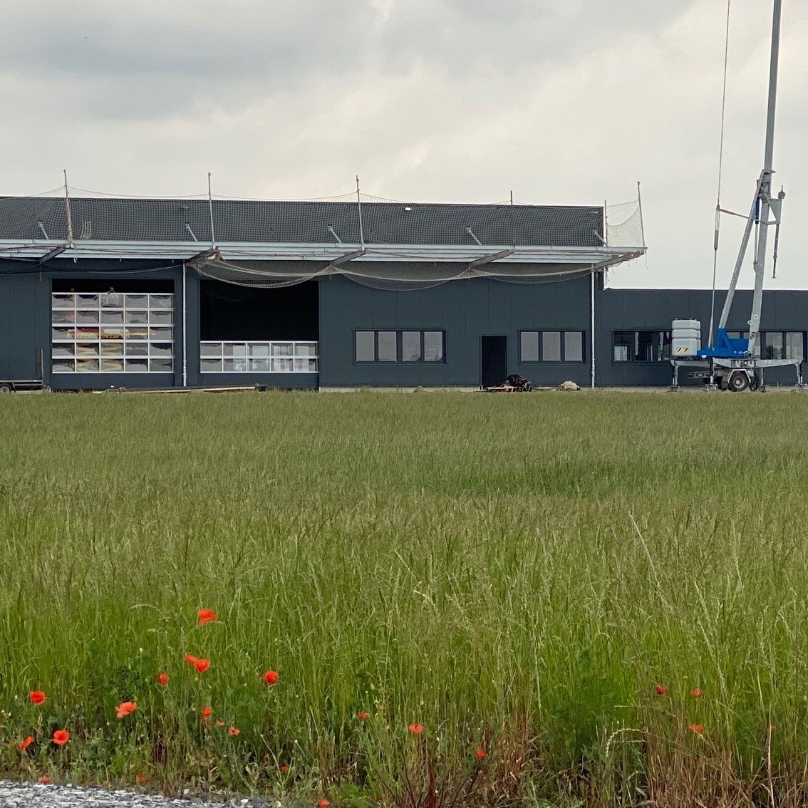 Die Wandverkleidung und die Dachtrapezbleche wurden montiert. Auch das Vordach ist bereits montiert.